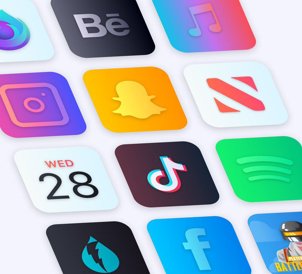 Gradient icons with subtle shadows to elevate the logo and to offer a modern, unique look.